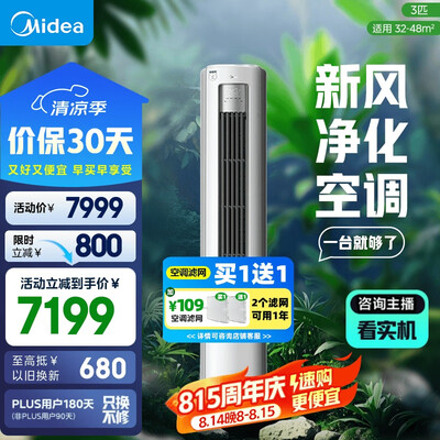 美的空调 3匹 静新风 家电国家补贴 空调立式 新风空调 客厅空调柜机 新一级能效 KFR-72LW/N8XF1-1目前活动价:7199元!