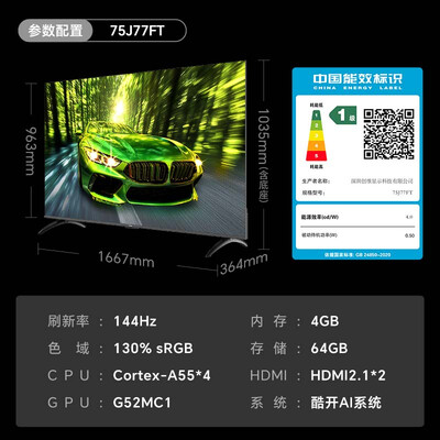 创维电视75J77FT配置参数:
