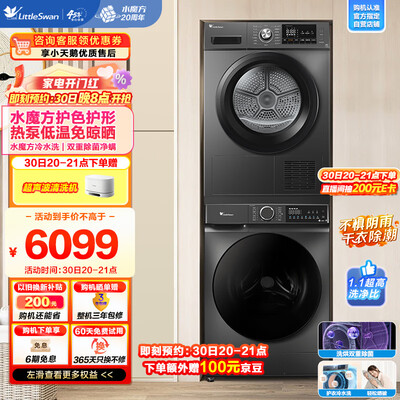 小天鹅(LittleSwa)滚筒洗衣机全自动+热泵烘干机家用 10公斤 超薄 水魔方 除菌除螨洗烘套装 TG100V618T+TH100VH03WT到手价格6099.0元。