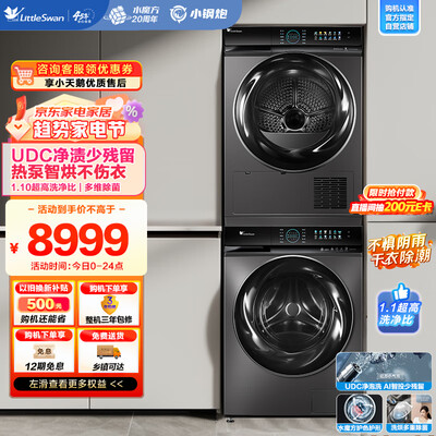 小天鹅(LittleSwa)1.1洗净比 UDC净泡洗 水魔方10kg滚筒洗衣机+全自动热泵烘干机家用 小钢炮TG100UTEC+809洗烘套装到手价格8999.0元。