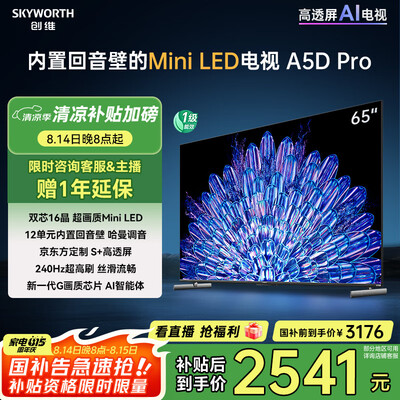 创维电视65A5F艺术款 65英寸448分区Mini LED 哑光屏显无缝贴墙壁画电视机65吋壁纸电视国家补贴65A5FT目前活动价:3119.2元!