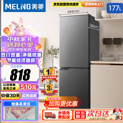 美菱(MeiLig)冰箱177升 两门二门双开门家用冷藏冷冻节能经济迷你宿舍小冰箱租房用小型保鲜电冰箱BCD-177LCX到手价格938元。