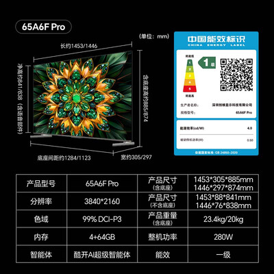 二、创维电视65A6F Pro和创维电视65A6E配置参数对比: