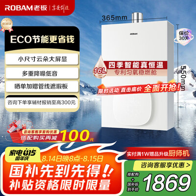老板(Robam)【国家补贴以旧换新】 小云朵16升燃气热水器天然气智能恒温降噪抗风防冻家用强排式HT322A-16目前活动价:1954.15元!